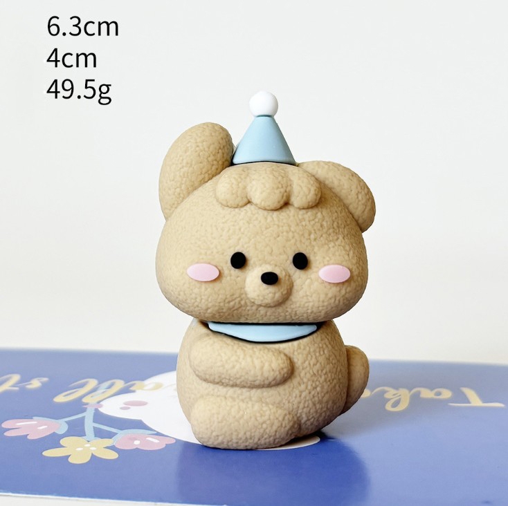 Trang trí silicon hình chú chó nhỏ màu nâu mũ xanh